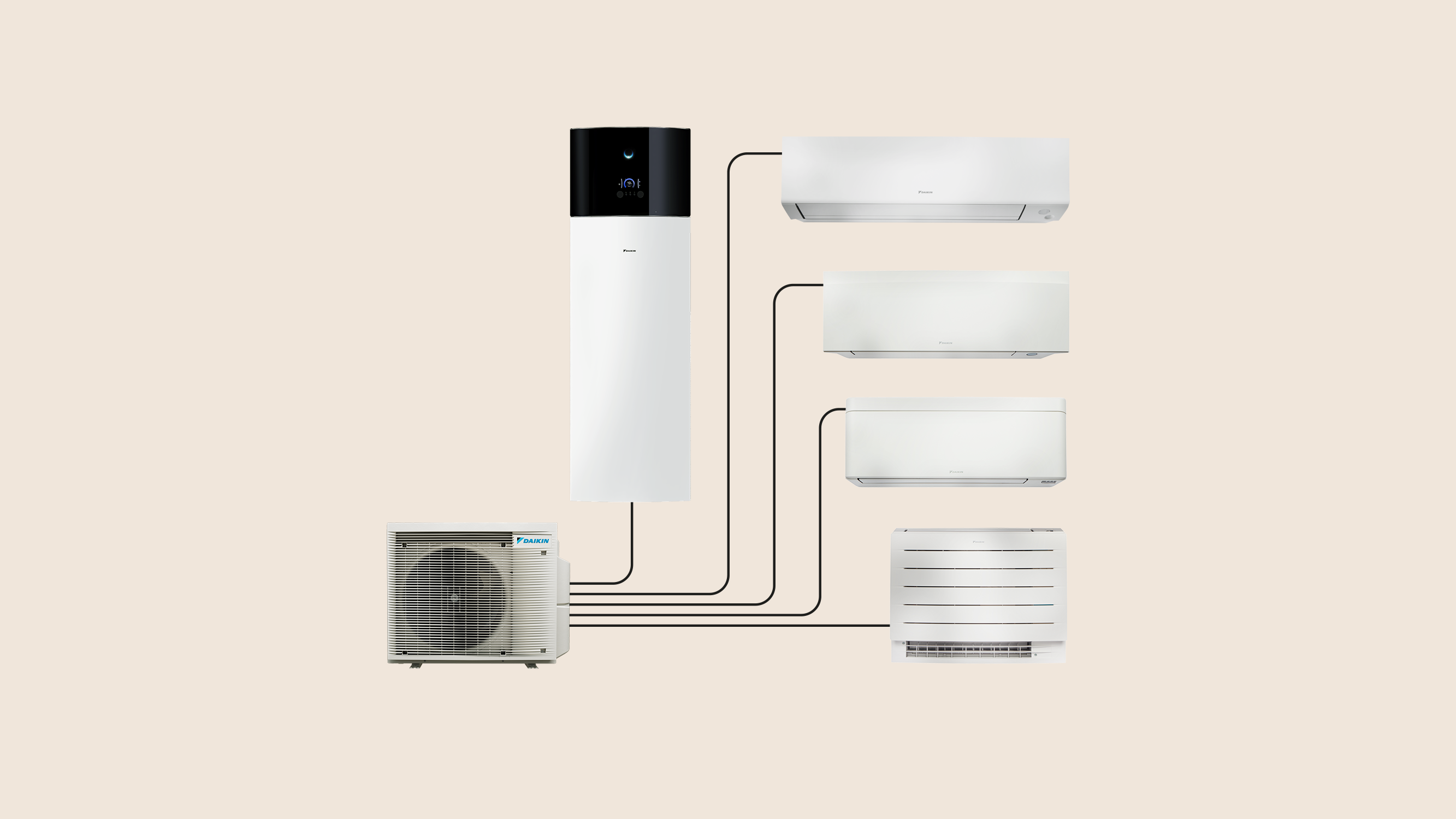 Opnå opvarmning og køling i flere rum ved at tilslutte en udendørsenhed til op til fem indendørsenheder