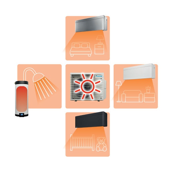 Multi: Opvarmning og køling i op til fem rum